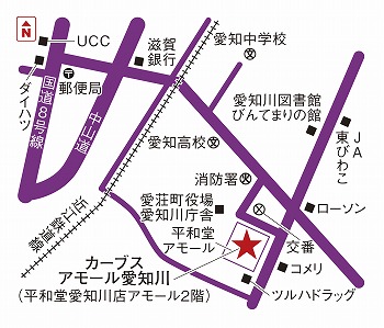 愛知川アモールよりお車でのアクセス 滋賀県愛知川駅から車で7分 フェイシャル専門サロン エッセンス